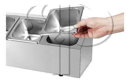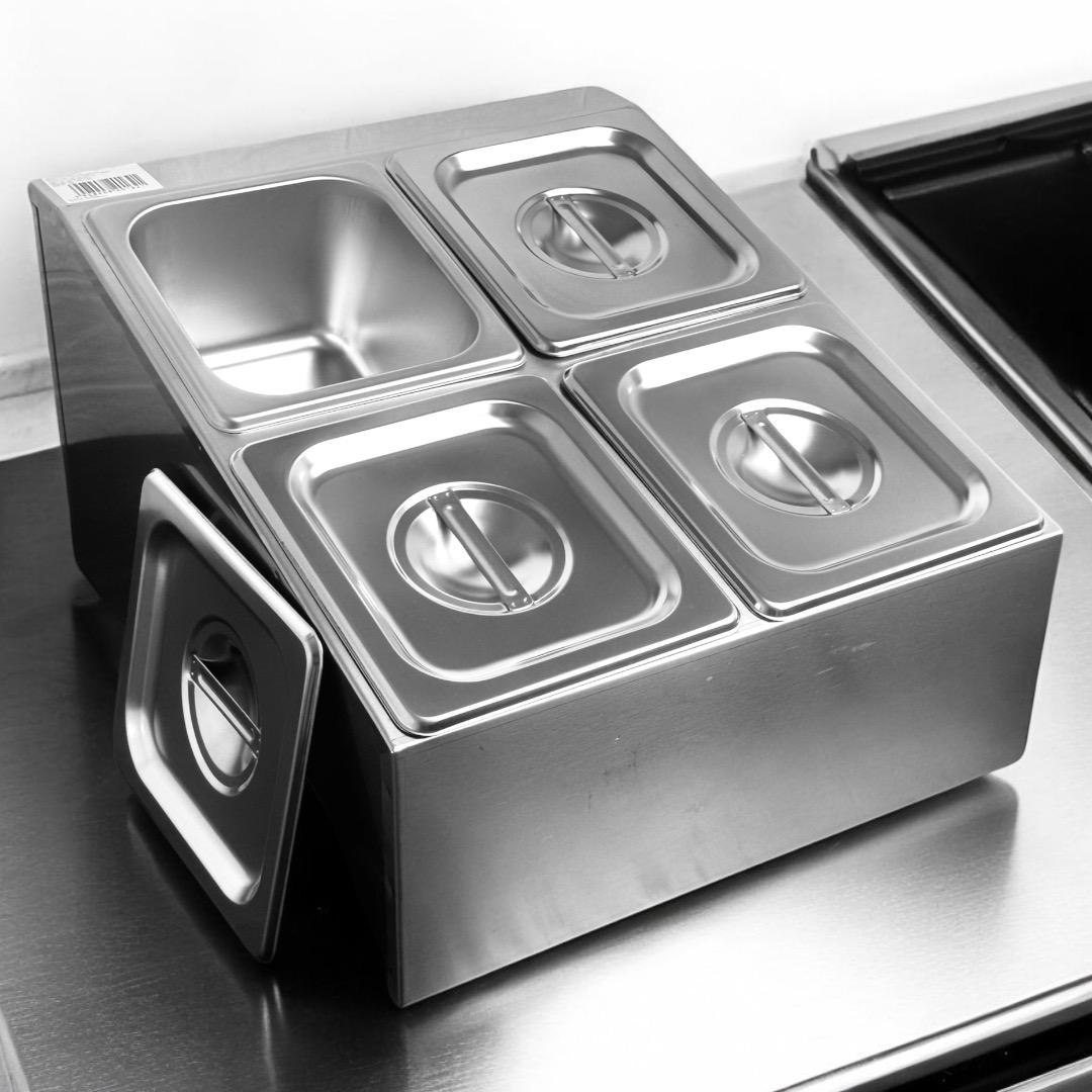 Acompanha 4 Cubas Inox (GN 1/6 x 100 mm) e 4 Tampas