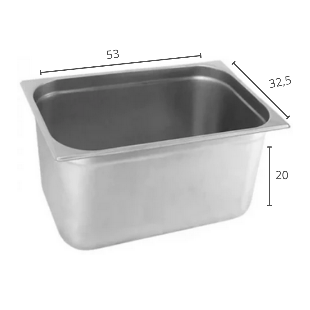 Produzida em Aço Inoxidável AISI 201, com 0,7 mm de espessura, especialmente desenvolvida para utilização gastronômica em Fornos Combinados, Refrigeradores, Rechauds, Buffet’s, Mesas Térmicas, Balcões Quentes ou Frios em restaurantes, bares, lanchonetes, cozinhas e refeitórios em geral.