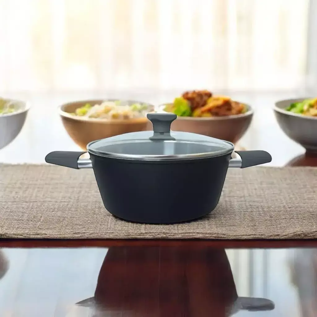 Panela Caçarola Indução 20cm diâmetro com 2000ml, 4mm de espessura, revestimento cerâmico, alças ergonômicas e resistentes ao calor. Livre de PFOA, PTFE e metais pesados.