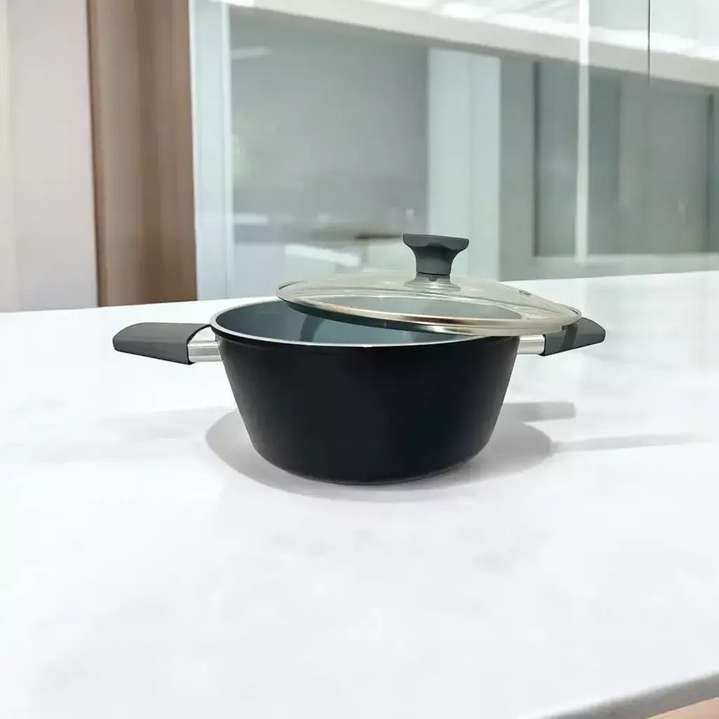 Panela Caçarola Indução 24cm diâmetro com 3000ml, 4mm de espessura, revestimento cerâmico, alças ergonômicas e resistentes ao calor. Livre de PFOA, PTFE e metais pesados.