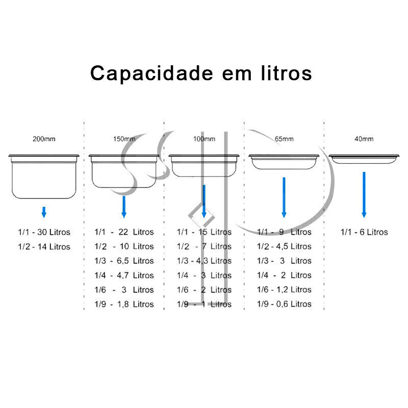 Atenção: Temos kits com maiores quantidades e kits de cuba com tampa. Trabalhamos com Cubas Gn de 1/1, 1/2, 1/3, 1/4, 1/6 e 1/9, com alturas de 20 a 200 mm, pergunte-nos.