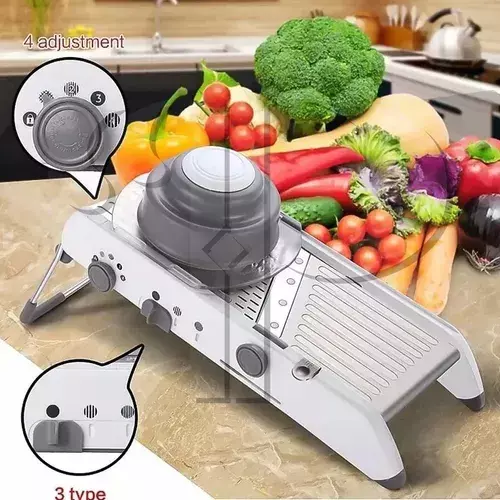 Tags: mandoline inox, cortador profissional, fatiador regulável, cortador de legumes, julienne, cortador de frutas, cozinha prática, acessório de cozinha inox, segurança na cozinha.