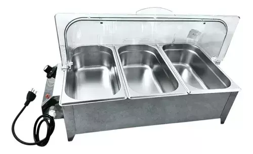 Buffet Rechaud elétrico de 750W com 3 cubas 1/3 x 100 e tampa de acrílico
