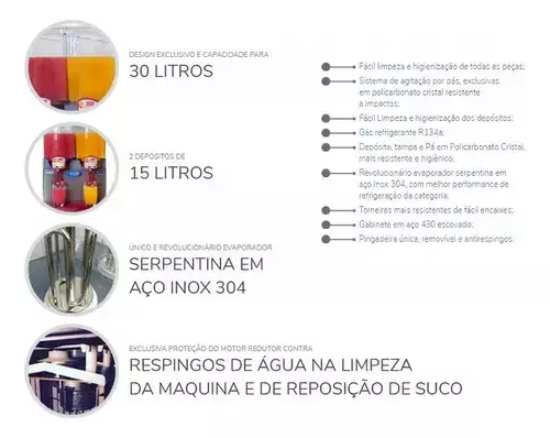 Se você busca eficiência, praticidade e alta performance na hora de servir bebidas geladas, a Refresqueira e Suqueira Elétrica Dupla de 30 litros Tecapply Reubly RF032 é a escolha perfeita para você!